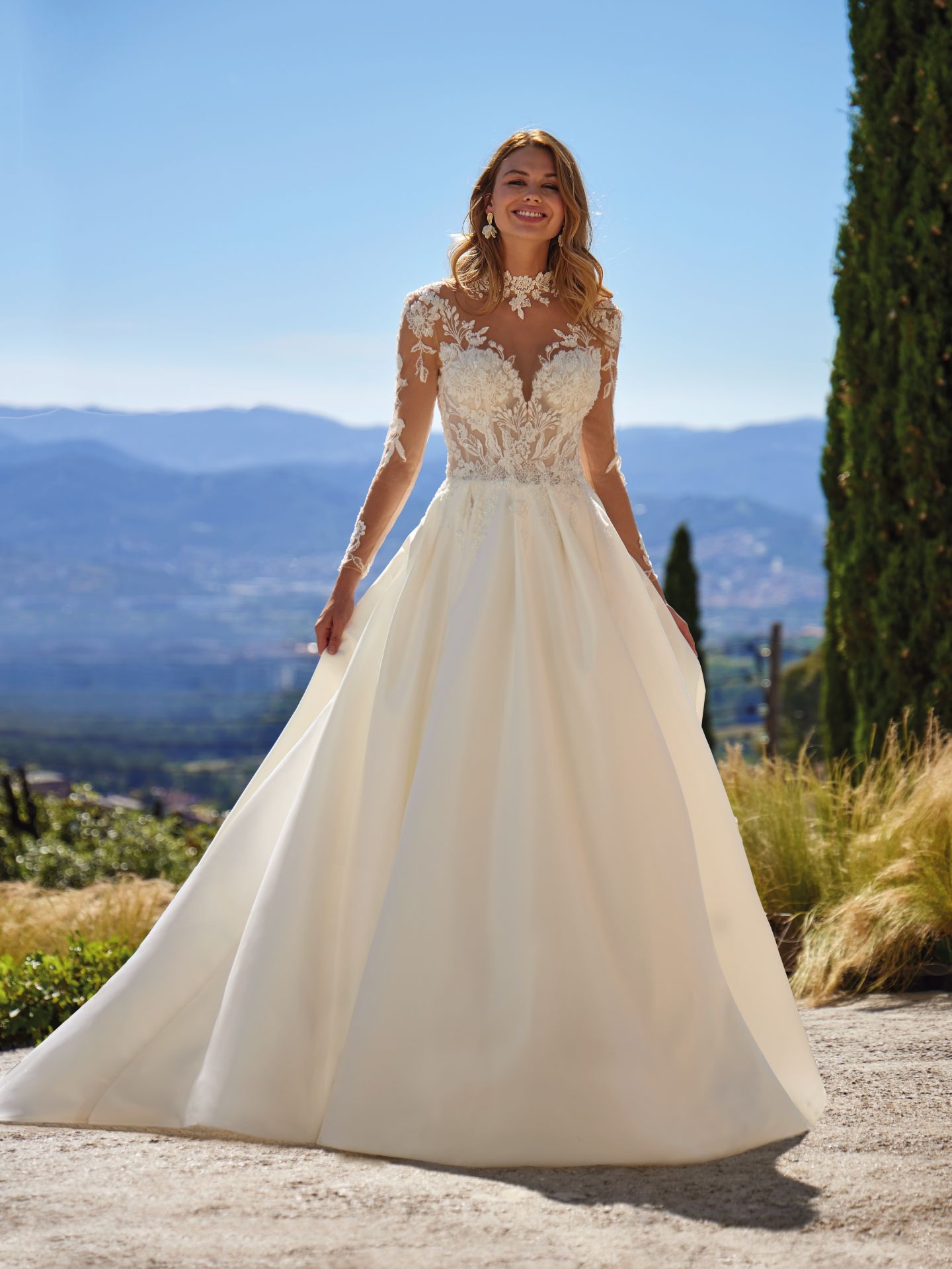 Chiffon+Satin, Ivory/Nude, Off White/Nude, 32-46, A-Line, Clean Chic, Sleeve