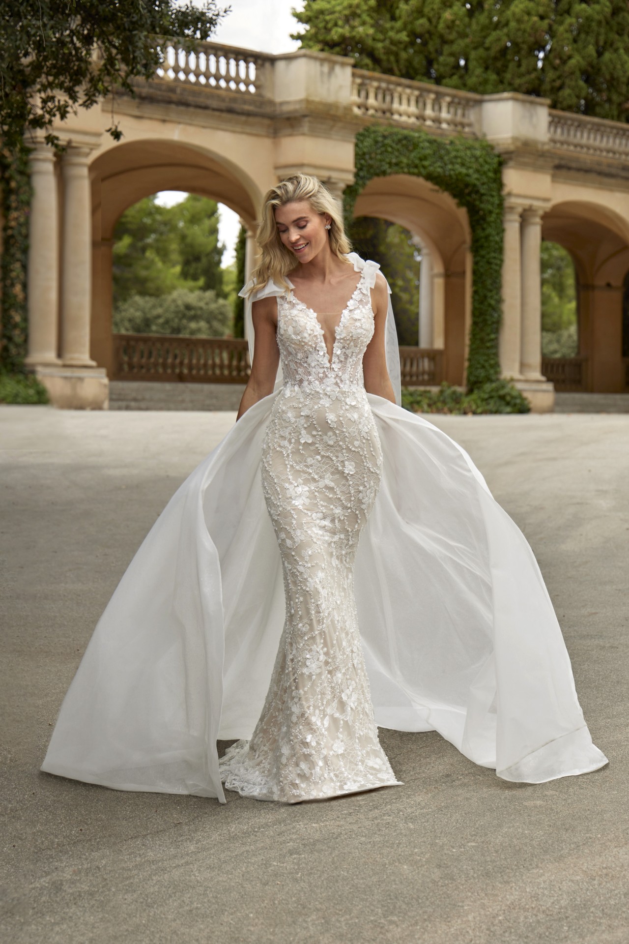 16003, Amelie Deluxe, Tulle+Lace, Langes Brautkleid, Ivory/Champagne/Nude, 32-46, Stretch Lining, Shiny Tulle