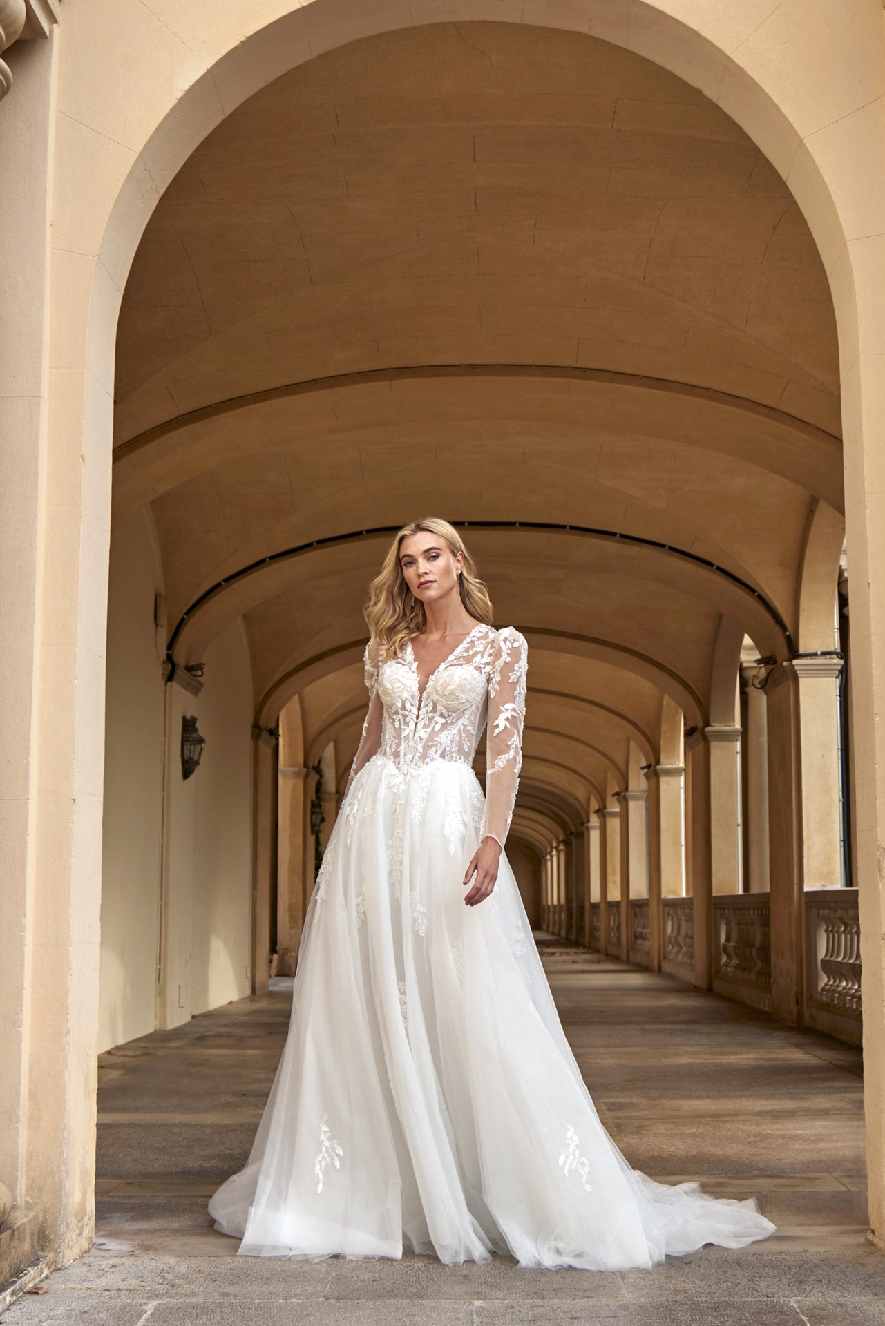 16015, Amelie Deluxe, Tulle, Langes Brautkleid, Ivory/Nude, 32-46, Shiny Tulle