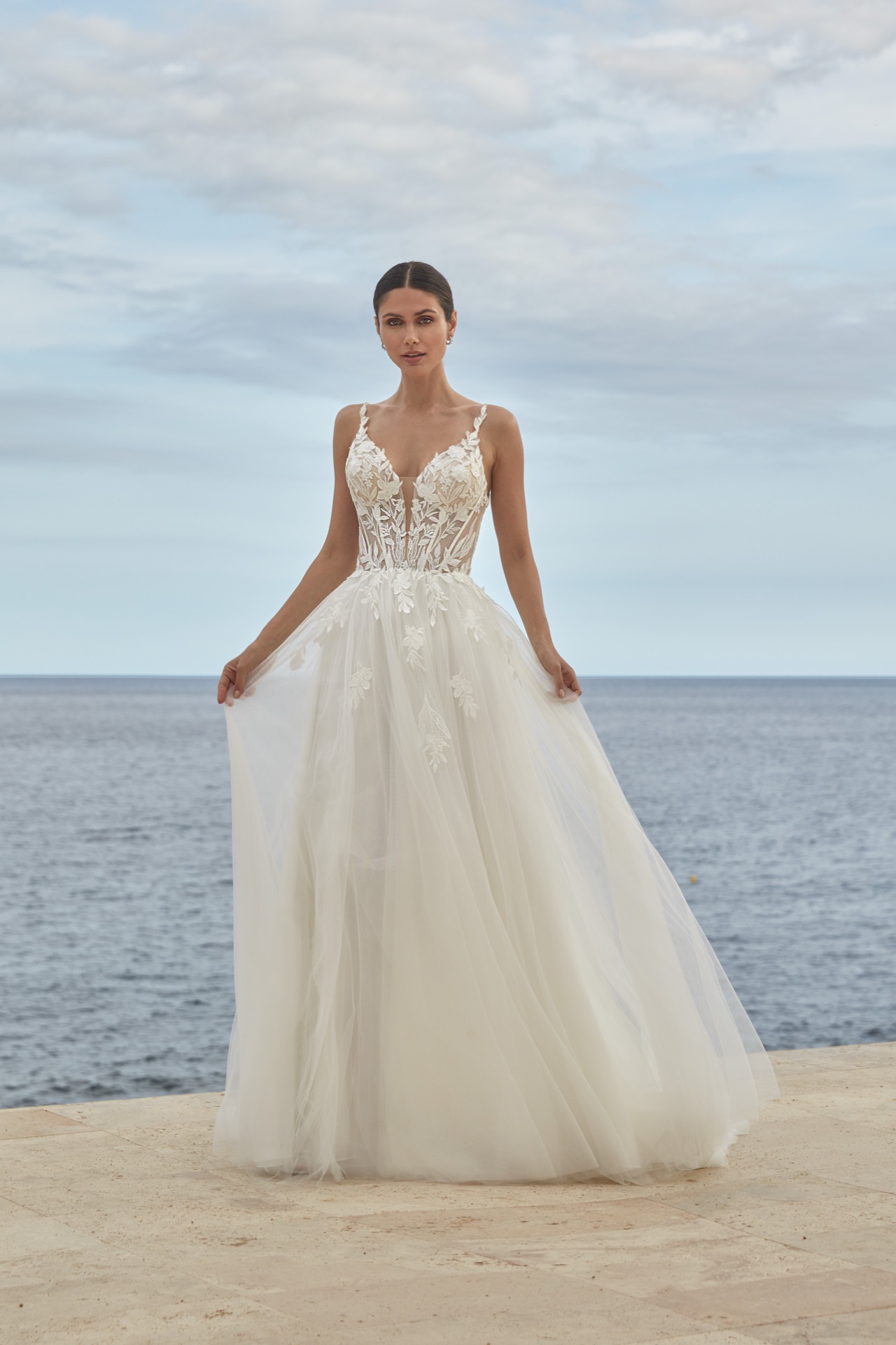 26019, Amelie, Tulle, Langes Brautkleid, Ivory/Nude, 34-46