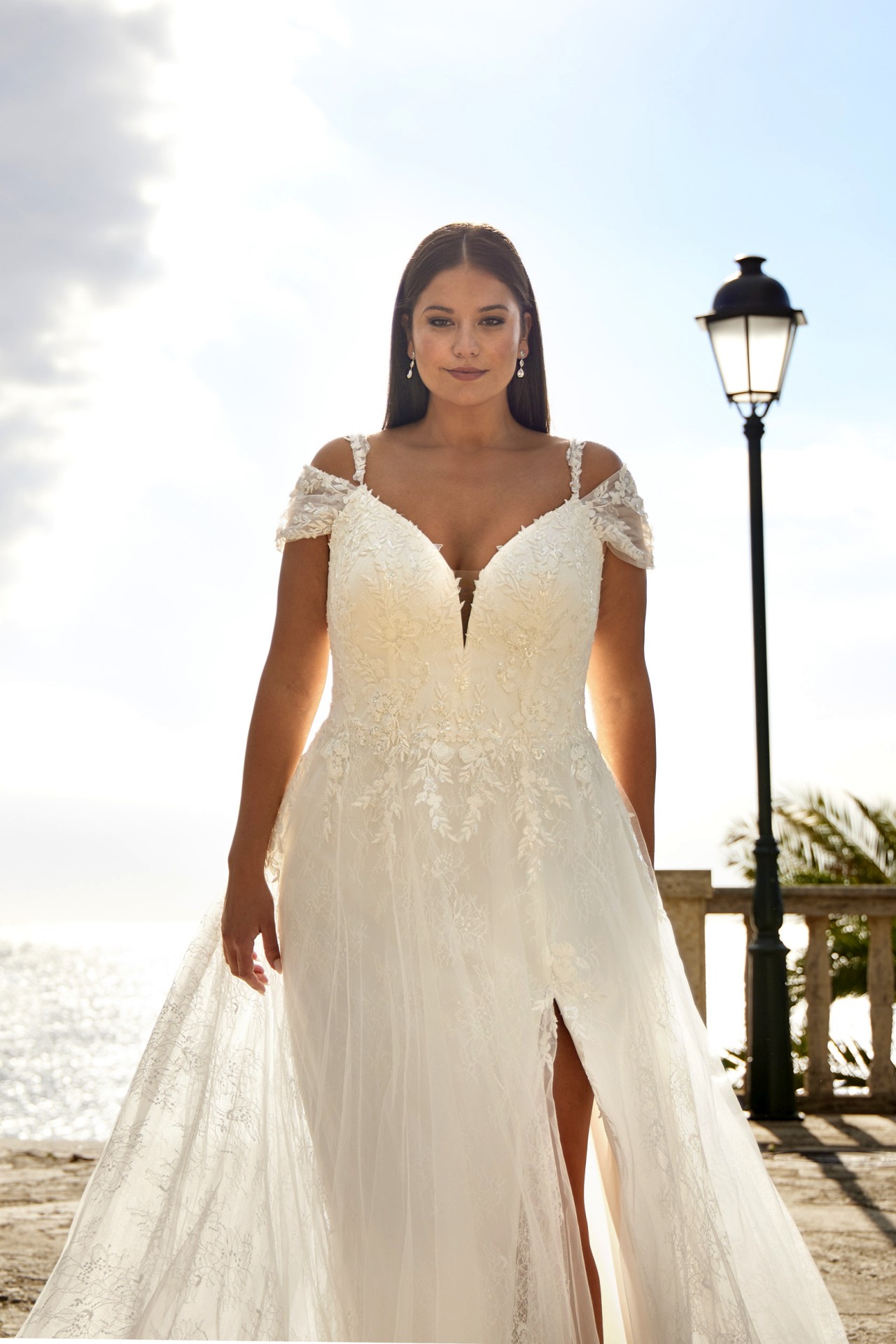36026, Bella, Tulle+Lace, Molliges Brautkleid, Ivory/Nude, 44-56, Stretch Lining