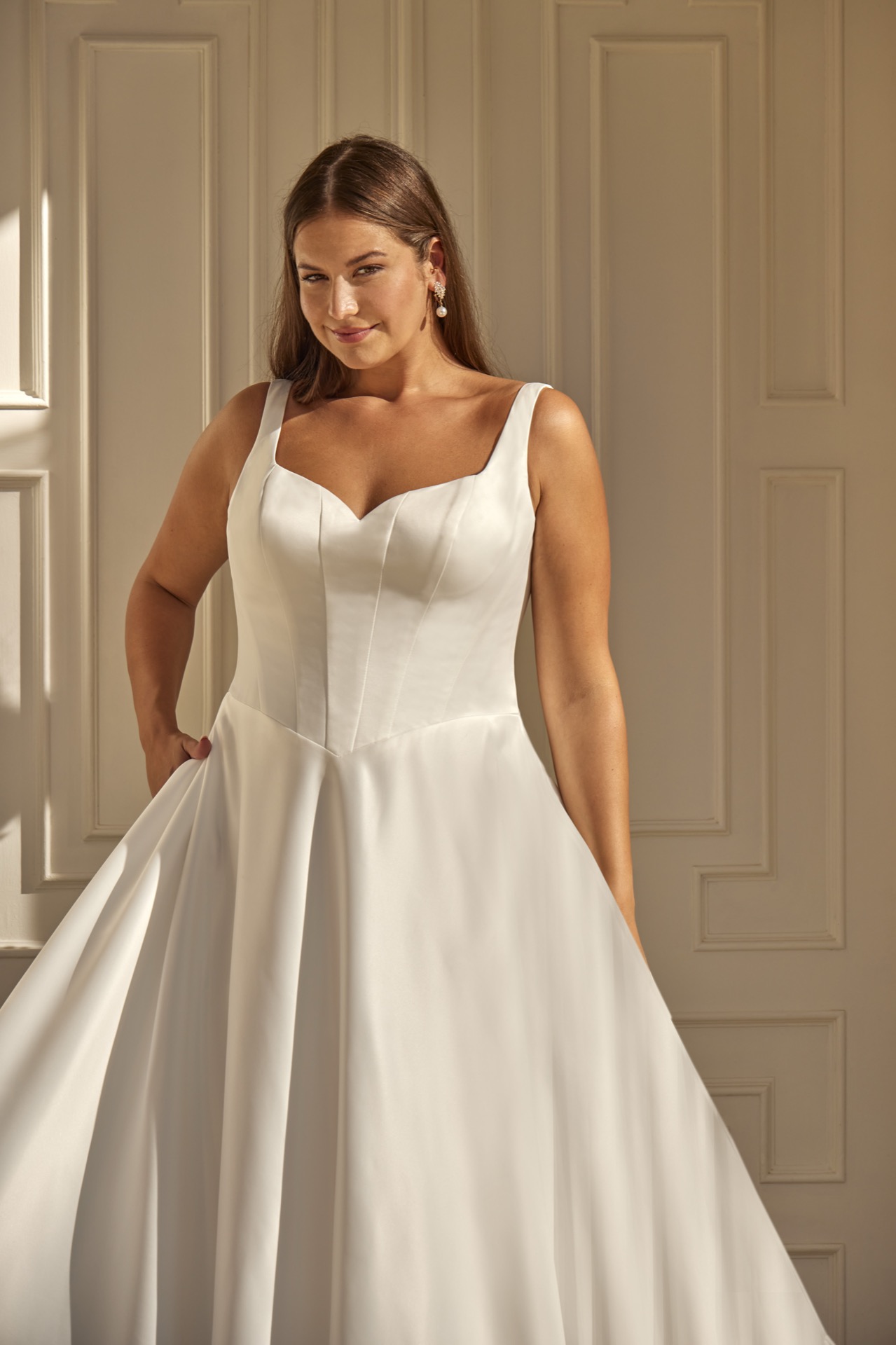 36040, Bella, Satin, Molliges Brautkleid, Off White, Ivory, 44-56