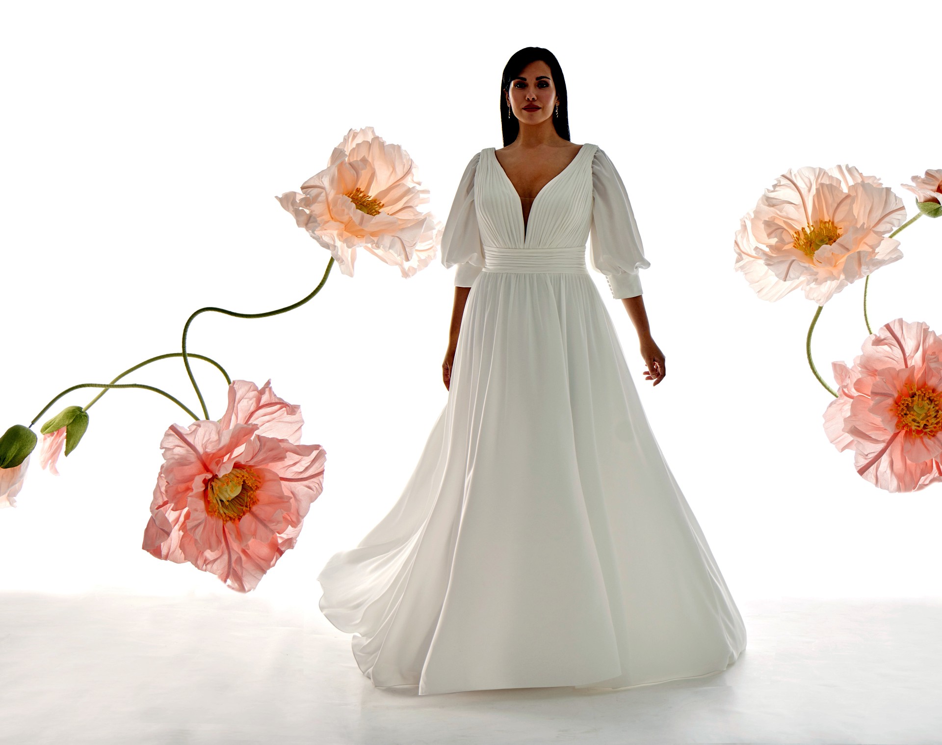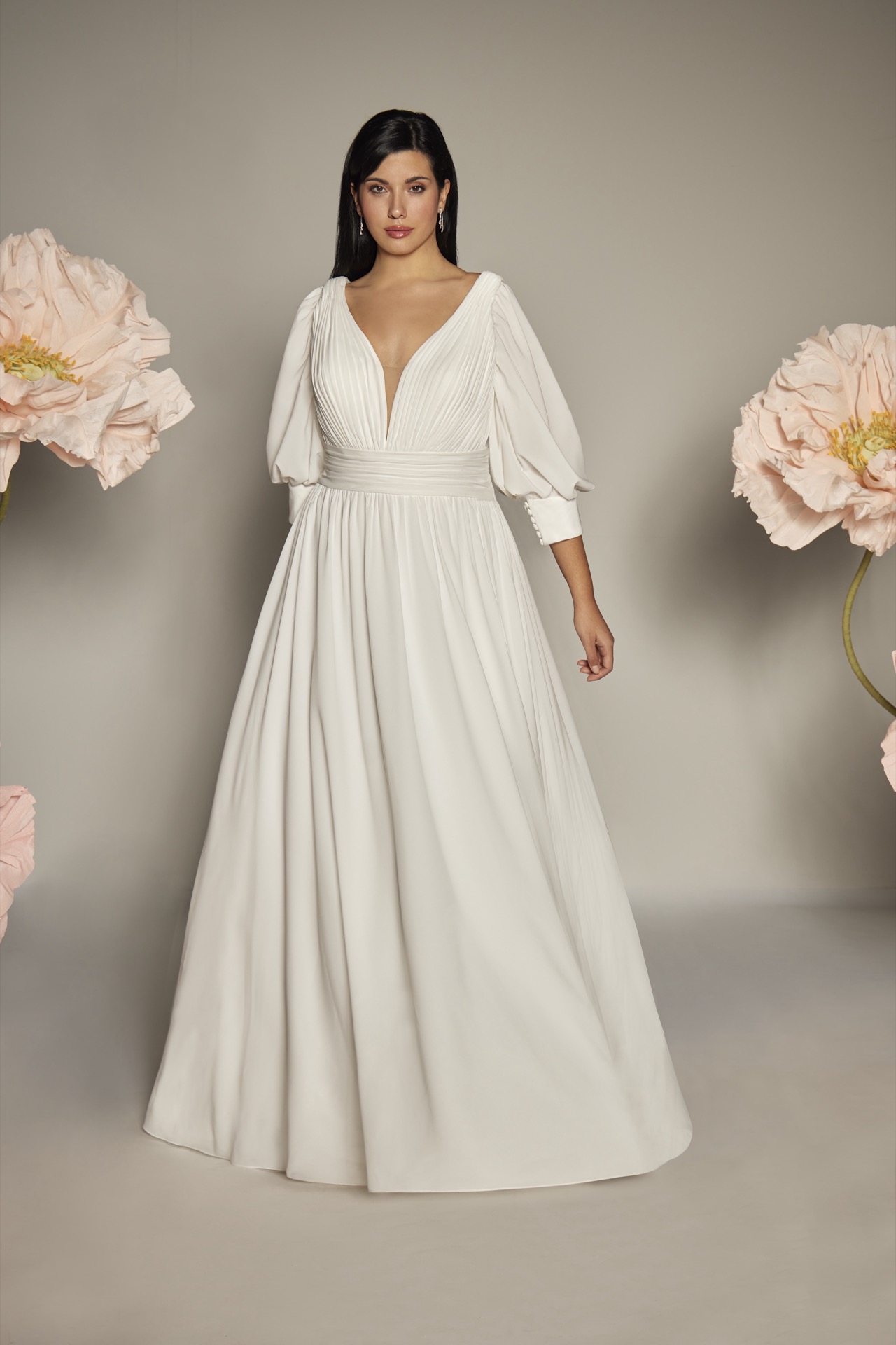 36046, Bella, Chiffon, Molliges Brautkleid, Ivory/Nude, 44-56, Stretch Lining, Sister Style: 46052