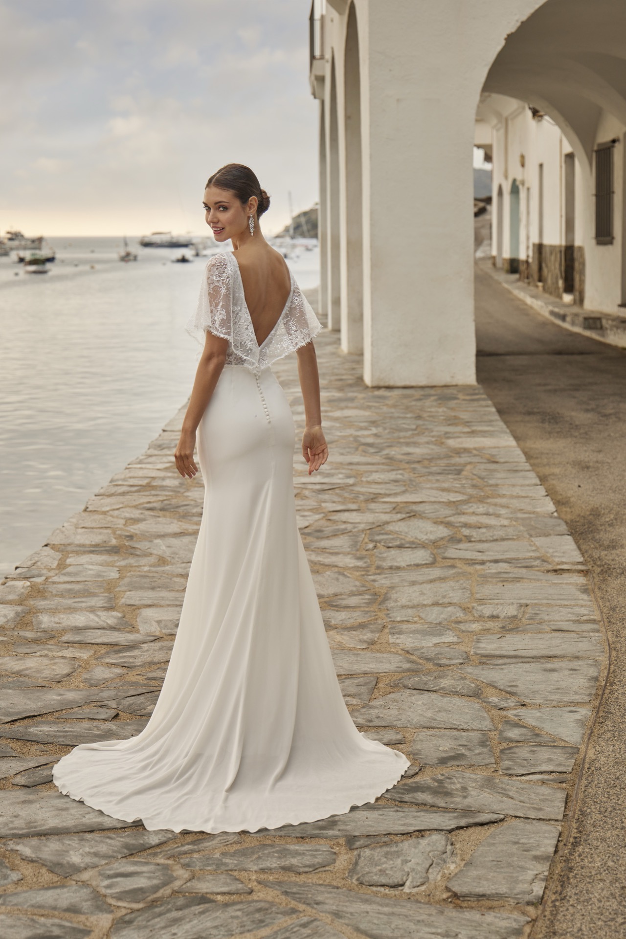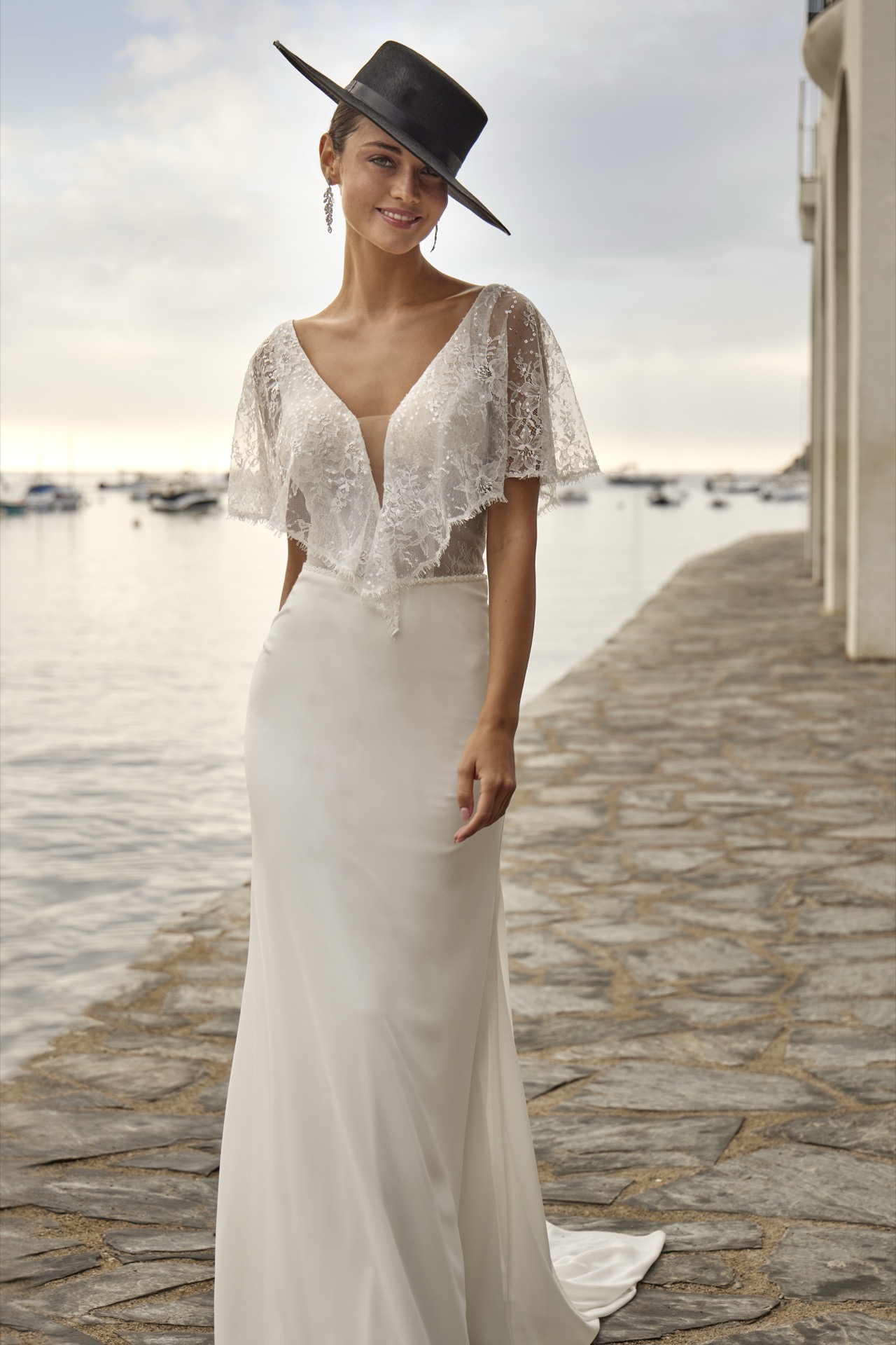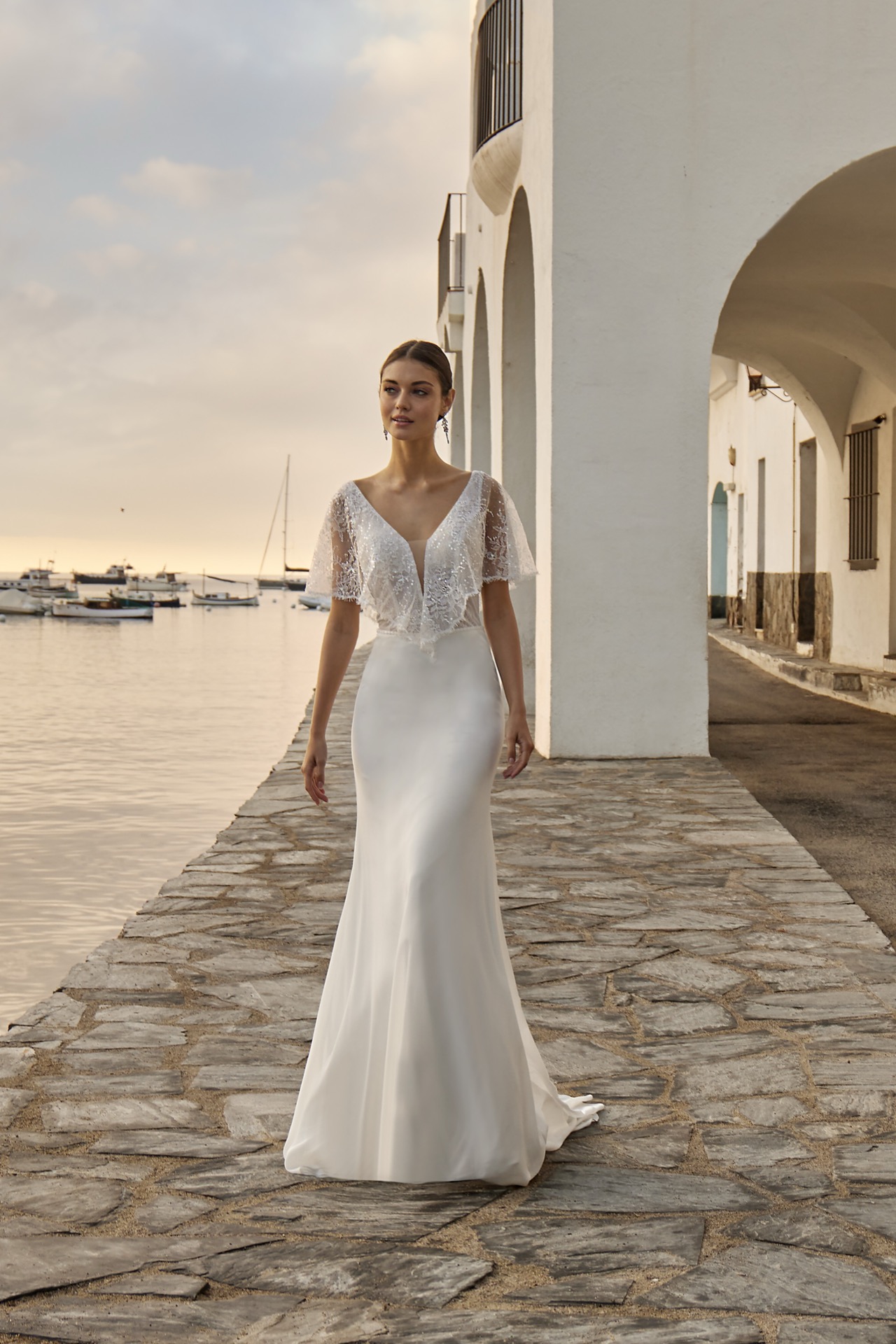 46001, Sayes, Chiffon, Langes Brautkleid, Ivory/Nude, 34-46, Sister Style: 36039