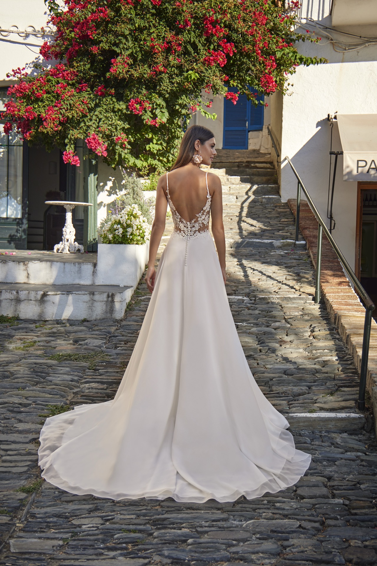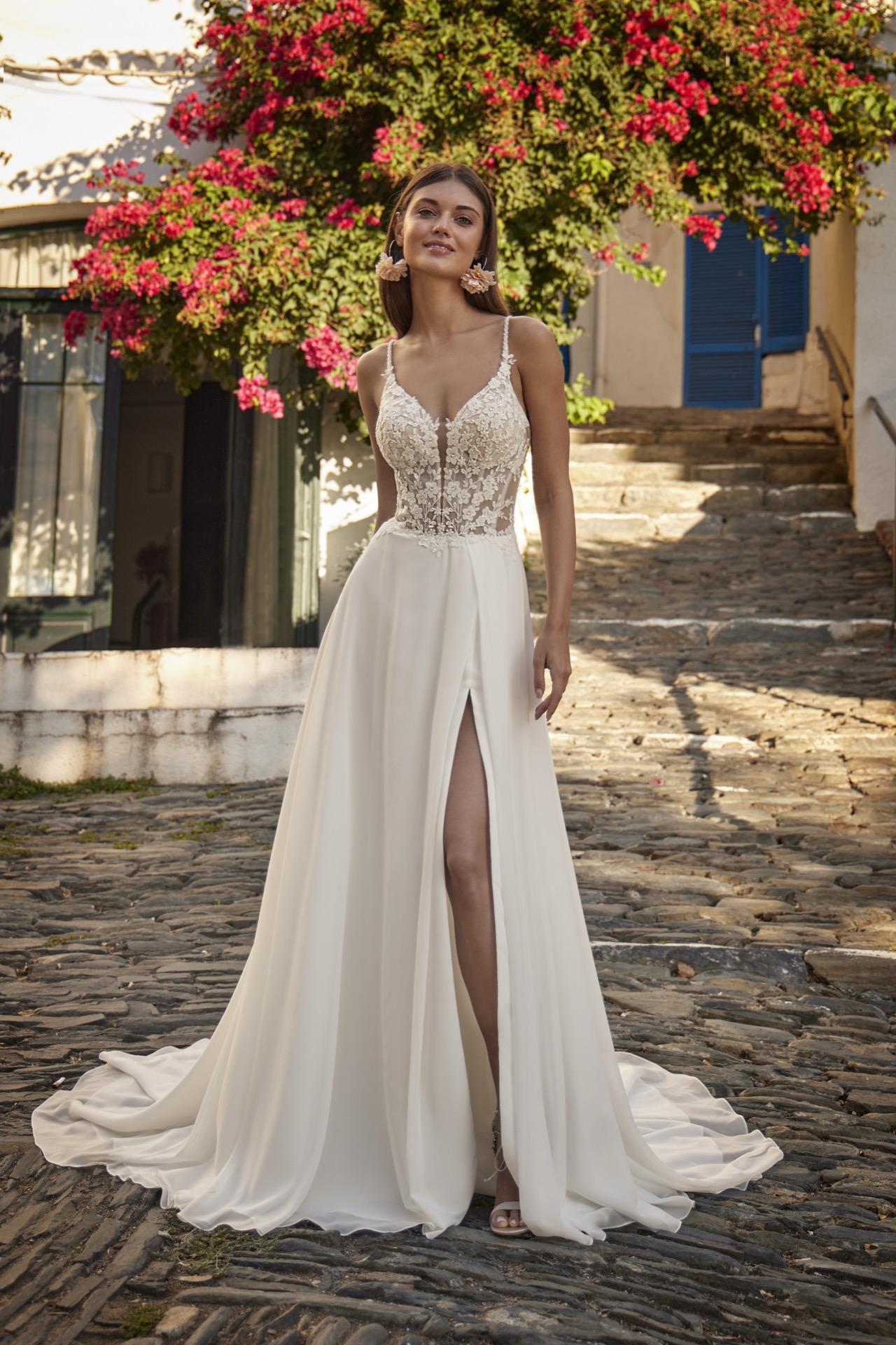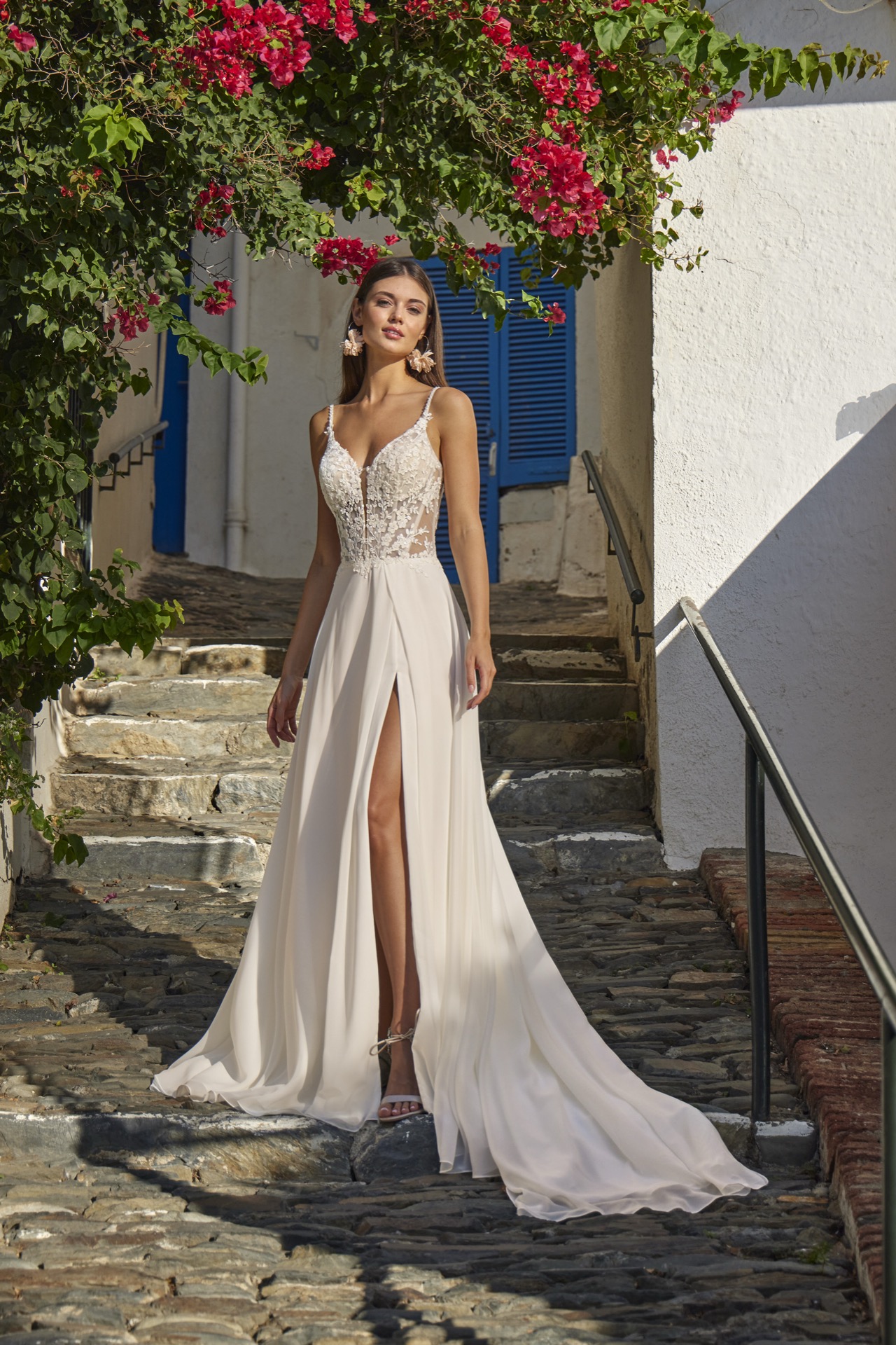 46028, Sayes, Chiffon, Langes Brautkleid, Ivory/Nude, 34-46, Option: 15cm longer