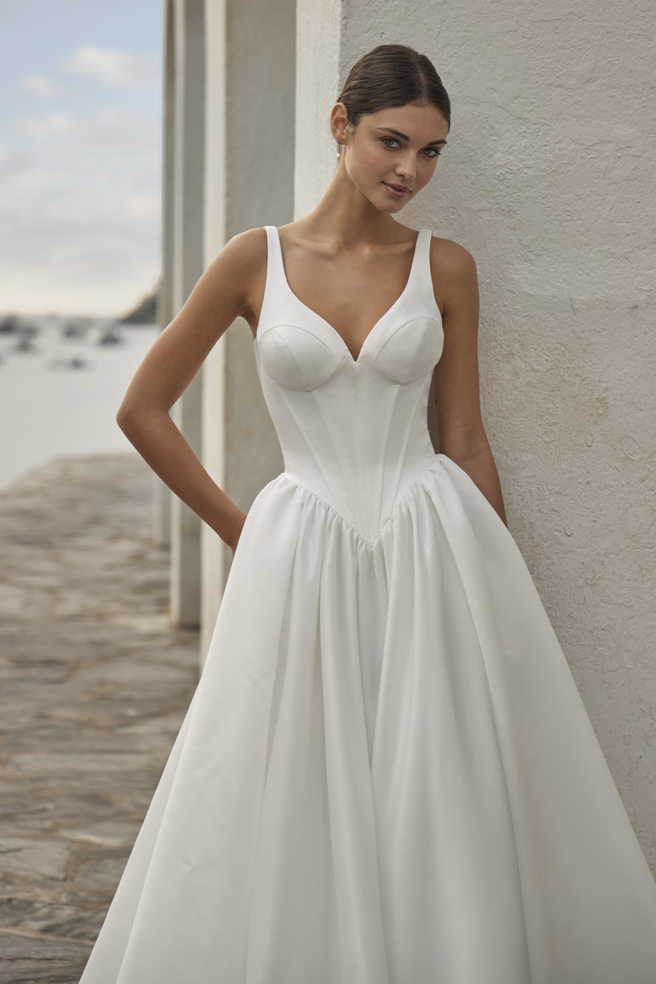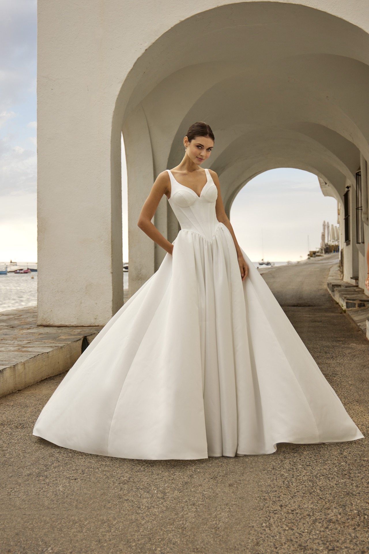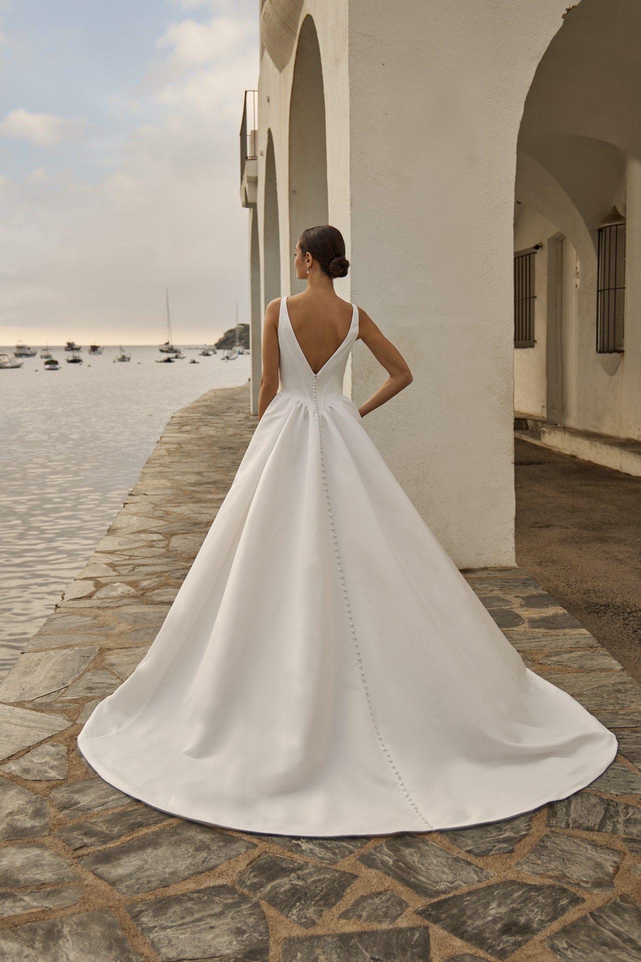 46035, Sayes, Satin, Langes Brautkleid, Off White, Ivory, 34-46