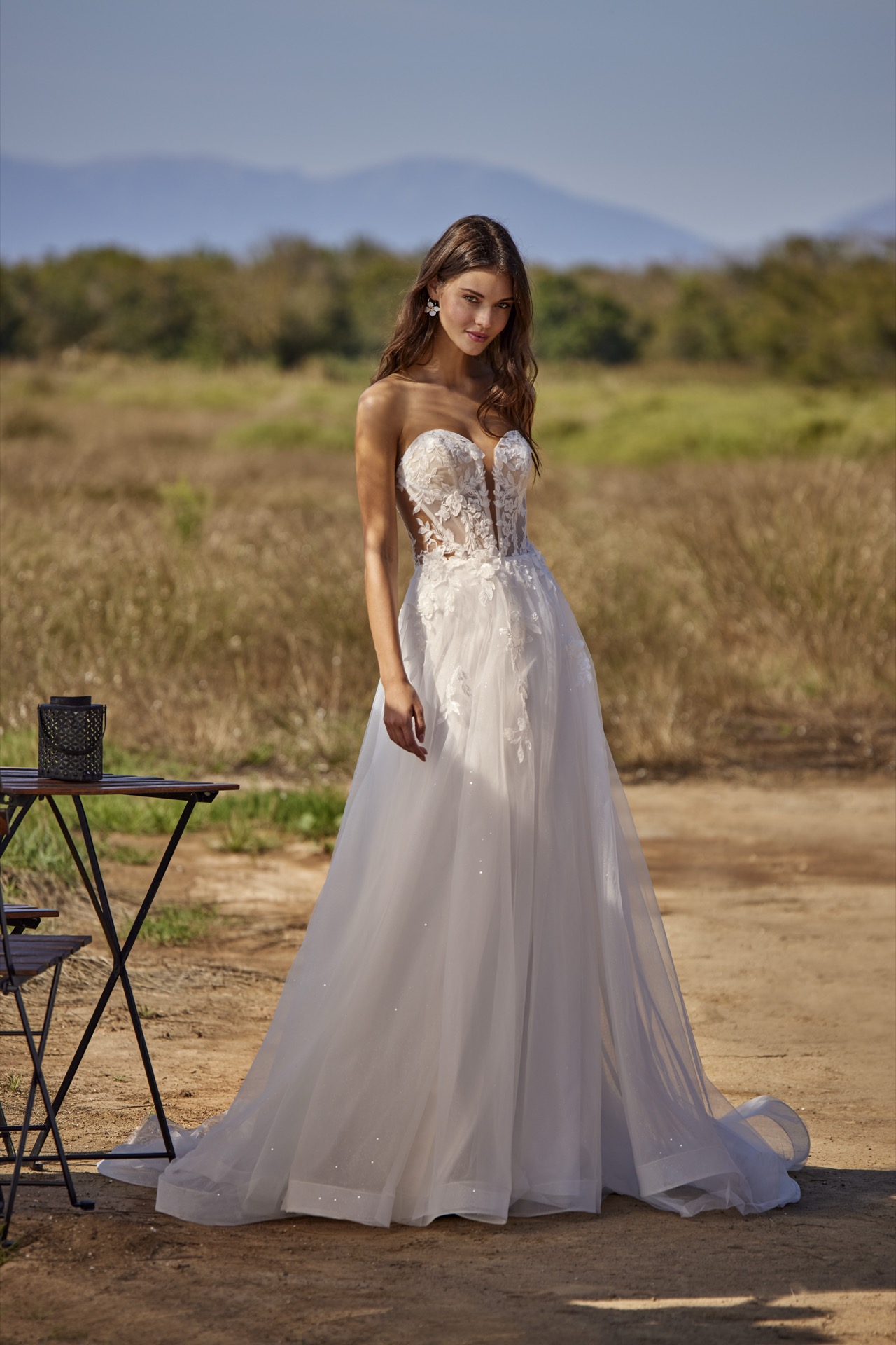 46040, Sayes, Tulle, Langes Brautkleid, Ivory/Nude, 34-46, Shiny Tulle